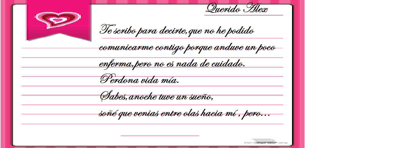 Alex mío, guarda bien esta carta que te escribo, que no la vea nadie, pues podrían descubrir nuestro amor secreto, y ya nunca te volvería a ver.