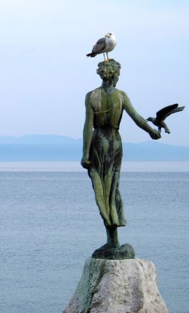 jajaja Niña "persiguiendo" gaviotas? ... esa es una imagen que he puesto recientemente en el romance, la inicial es la de abajo, la de la escultura. Lo que yo veo, el la imagen de una niña saltado para alcanzar a las gaviotas, es para mí idílica; si ma cambiara el avatar, si dejara de ser libélula, podría ser esa niña. ya la he puesto en algún otro poema; para mi mas que perseguir es como si quisiera ser una de ellas. Creo que una niña que pasa su infancia rodeada de mar y la playa es como el parque en que juega,y las gaviotas sus compañeras de juego, a la fuerza su salto termina siendo como un vuelo.