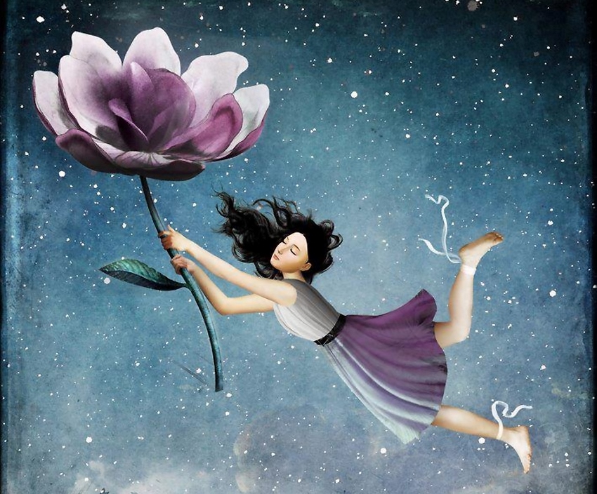 y lleva a volar a la mujer radiante