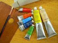 la paleta y el pincel.