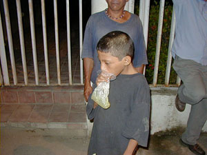 Hay!! pobre niño!!! hay muchos por desgracia en sud america que les dan al pegamento vaya mierda no? (perdón)